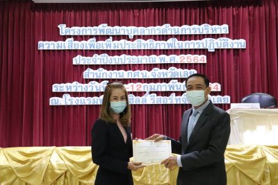วันที่11กุมภาพันธ์ 2564 นางนงลักษณ์ พร้อมจะบก ผู้อำนวยการ กศน.อำเภอท่าลี่ และบุคลากร รับเกียรติบัตร การปฏิบัติงานดีเด่น สำนักงานกศน.จังหวัดเลย จากท่าน ธนากร ดอนเหนือ ผู้ตรวจราชการกระทรวงศึกษาธิการ ณ โรงแรมฟอร์ราฮิลล์ รีสอร์ท จังหวัดเลย