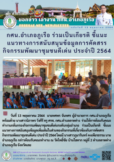 กศน.อำเภอภูเรือ ร่วมเป็นเกียรติ ชี้แนะแนวทางการสนับสนุนข้อมูลการคัดสรรกิจกรรมพัฒนาชุมชนดีเด่น ประจำปี 2564