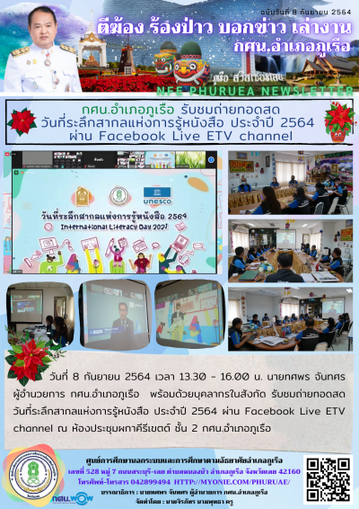 กศน.อำเภอภูเรือ รับชมถ่ายทอดสด วันที่ระลึกสากลแห่งการรู้หนังสือ ประจำปี 2564 ผ่าน Facebook Live ETV channel