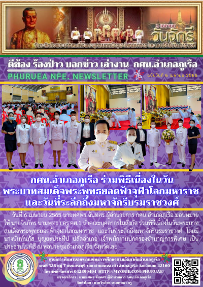 กศน.อำเภอภูเรือ ร่วมพิธีเนื่องในวันพระบาทสมเด็จพระพุทธยอดฟ้าจุฬาโลกมหาราช และวันที่ระลึกถึงมหาจักรีบรมราชวงศ์
