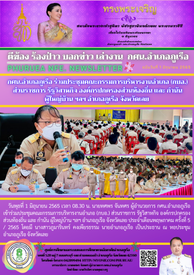 กศน.อำเภอภูเรือ ร่วมประชุมคณะกรรมการบริหารงานอำเภอ (กบอ.) ส่วนราชการ รัฐวิสาหกิจ องค์กรปกครองส่วนท้องถิ่น และ กำนัน ผู้ใหญ่บ้าน ฯลฯ อำเภอภูเรือ จังหวัดเลย