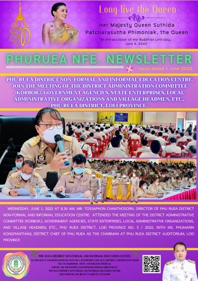 วันพุธที่ 1 มิถุนายน 2565 เวลา 08.30 น. นายทศพร จันทศร ผู้อำนวยการ กศน.อำเภอภูเรือ เข้าร่วมประชุมคณะกรรมการบริหารงานอำเภอ (กบอ.) ส่วนราชการ รัฐวิสาหกิจ องค์กรปกครองส่วนท้องถิ่น และ กำนัน ผู้ใหญ่บ้าน ฯลฯ อำเภอภูเรือ จังหวัดเลย ประจำเดือนพฤษภาคม ครั้งที่ 5 / 2565 โดยมี นางสาวภูมารินทร์ คงเพียรธรรม นายอำเภอภูเรือ เป็นประธาน ณ หอประชุมอำเภอภูเรือ จังหวัดเลย