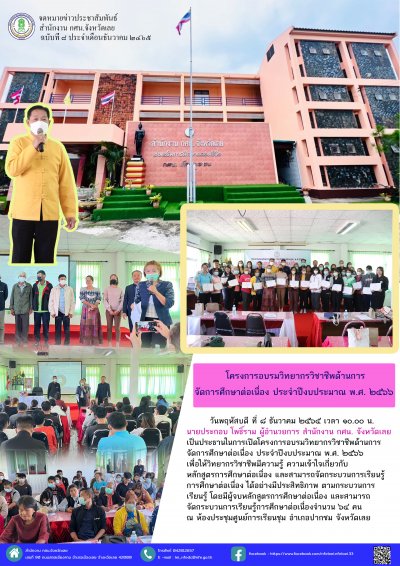 จัดกระบวนการเรียนรู้การศึกษาต่อเนื่องจำนวน ๖๔ คน ณ ห้องประชุมศูนย์การเรียนชุม อำเภอปากชม จังหวัดเลย