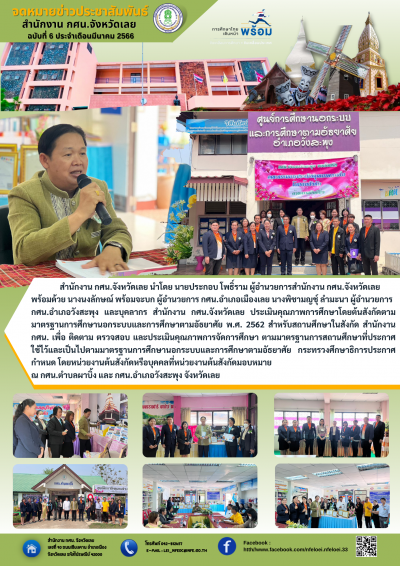สำนักงาน กศน.จังหวัดเลย นำโดย นายประกอบ โพธิ์ราม ผู้อำนวยการสำนักงาน กศน.จังหวัดเลย พร้อมด้วย นางนงลักษณ์ พร้อมจะบก ผู้อำนวยการ กศน.อำเภอเมืองเลย นางพิชามญชุ์ ลำมะนา ผู้อำนวยการ กศน.อำเภอวังสะพุง และบุคลากร สำนักงาน กศน.จังหวัดเลย ประเมินคุณภาพการศึกษาโดยต้นสังกัดตามมาตรฐานการศึกษานอกระบบและการศึกษาตามอัธยาศัย พ.ศ. 2562 สำหรับสถานศึกษาในสังกัด สำนักงาน กศน. เพื่อ ติดตาม ตรวจสอบ และประเมินคุณภาพการจัดการศึกษา ตามมาตรฐานการสถานศึกษาที่ประกาศใช้ไว้และเป็นไปตามมาตรฐานการศึกษานอกระบบและการศึกษาตามอัธยาศัย กระทรวงศึกษาธิการประกาศกำหนด โดยหน่วยงานต้นสังกัดหรือบุคคลที่หน่วยงานต้นสังกัดมอบหมาย ณ กศน.ตำบลผาบิ้ง และ กศน.อำเภอวังสะพุง จังหวัดเลย
