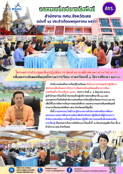 สำนักงานส่งเสริมการเรียนรู้จังหวัดเลย จัดโครงการประชุมเชิงปฏิบัติการจัดทำแบบฝึกทักษะทางวิชาการ เพื่อยกระดับผลสัมฤทธิ์ทางการเรียนภาคเรียนที่ ๑ ปีการศึกษา ๒๕๖๖ ระหว่าง วันที่ ๑ - ๒ มิถุนายน ๒๕๖๖ เข้าโครงการในครั้งนี้ ประกอบด้วยผู้บริหารสถานศึกษาทั้ง ๑๔ แห่ง และบุคลากรในสังกัดสำนักงานส่งเสริมการเรียนรู้จังหวัดเลย จำนวน ๘๒ คน เพื่อใช้ในการจัดการเรียนการสอนนักศึกษา และสามารถยกระดับผลสัมฤทธิ์ทางการเรียนของนักศึกษา สกร.จังหวัดเลยให้สูงขึ้น