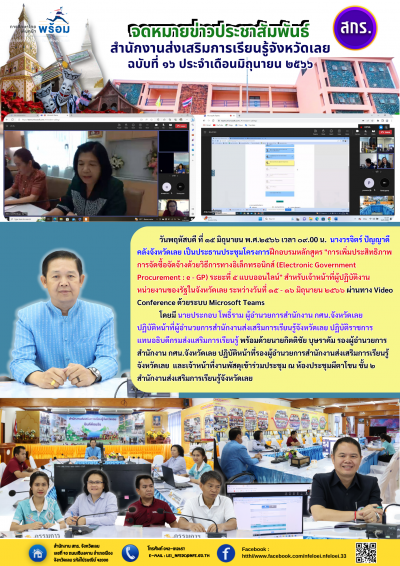 วันพฤหัสบดี ที่ ๑๕ มิถุนายน พ.ศ.๒๕๖๖ เวลา ๐๙.00 น. นางวรจิตร์ ปัญญาดี คลังจังหวัดเลย เป็นประธานประชุมโครงการฝึกอบรมหลักสูตร "การเพิ่มประสิทธิภาพการจัดซื้อจัดจ้างด้วยวิธีการทางอิเล็กทรอนิกส์ (Electronic Government Procurement : e - GP) ระยะที่ ๕ แบบออนไลน์" สำหรับเจ้าหน้าที่ผู้ปฏิบัติงาน หน่วยงานของรัฐในจังหวัดเลย ระหว่างวันที่ ๑๕ - ๑๖ มิถุนายน ๒๕๖๖ ผ่านทาง Video Conference ด้วยระบบ Microsoft Teams