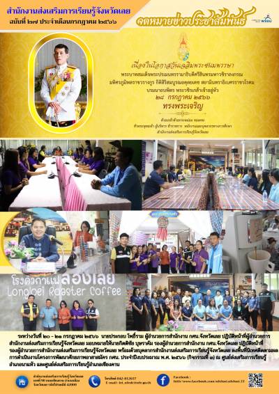 ระหว่างวันที่ ๒๐ - ๒๑ กรกฎาคม ๒๕๖๖ นายประกอบ โพธิ์ราม ผู้อำนวยการสำนักงาน กศน.จังหวัดเลย ปฏิบัติหน้าที่ผู้อำนวยการสำนักงานส่งเสริมการเรียนรู้จังหวัดเลย มอบหมายให้นายกิตติชัย บุษราคัม รองผู้อำนวยการสำนักงาน กศน.จังหวัดเลย ปฏิบัติหน้าที่รองผู้อำนวยการสำนักงานส่งเสริมการเรียนรู้จังหวัดเลย พร้อมด้วยบุคลากรสำนักงานส่งเสริมการเรียนรู้จังหวัดเลย ลงพื้นที่นิเทศติดตามผลการดำเนินงานโครงการพัฒนาศักยภาพอาสาสมัคร กศน. ประจำปีงบประมาณ พ.ศ. ๒๕๖๖ (กิจกรรมที่ ๓) ณ ศูนย์ส่งเสริมการเรียนรู้อำเภอนาแห้ว และศูนย์ส่งเสริมการเรียนรู้อำเภอเชียงคาน