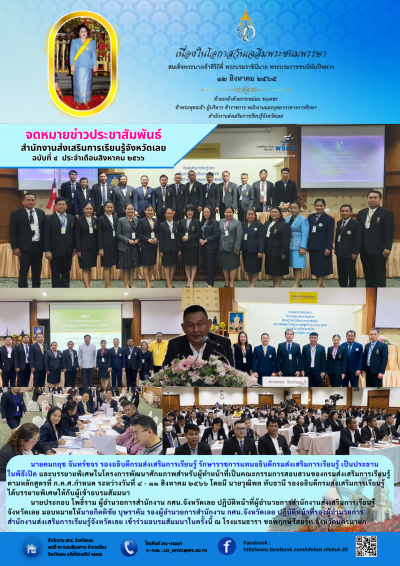 นายประกอบ โพธิ์ราม ผู้อำนวยการสำนักงาน กศน.จังหวัดเลย ปฏิบัติหน้าที่ผู้อำนวยการสำนักงานส่งเสริมการเรียนรู้จังหวัดเลย มอบหมายให้นายกิตติชัย บุษราคัม รองผู้อำนวยการสำนักงาน กศน.จังหวัดเลย ปฏิบัติหน้าที่รองผู้อำนวยการสำนักงานส่งเสริมการเรียนรู้จังหวัดเลย เข้าร่วมอบรมสัมมนาในครั้งนี้ ณ โรงแรมธารา ชลพฤกษ์รีสอร์ท จังหวัดนครนายก