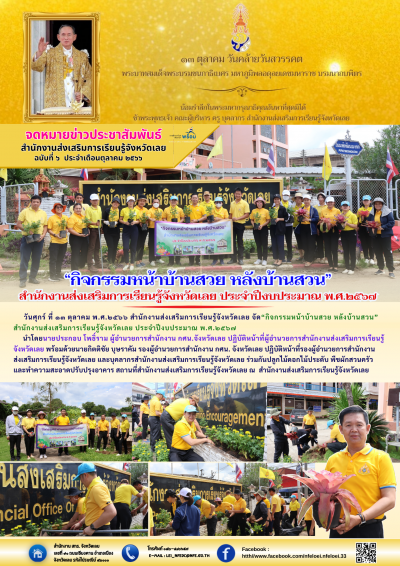 วันศุกร์ ที่ ๑๓ ตุลาคม พ.ศ.๒๕๖๖ สำนักงานส่งเสริมการเรียนรู้จังหวัดเลย จัด“กิจกรรมหน้าบ้านสวย หลังบ้านสวน” สำนักงานส่งเสริมการเรียนรู้จังหวัดเลย ประจำปีงบประมาณ พ.ศ.๒๕๖๗