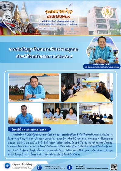 ชี้แจงการต่อสัญญาจ้างเหมาบริการรายบุคคล จำนวน ๑๙ อัตรา ประจำปีงบประมาณ พ.ศ.๒๕๖๙ (เดือนตุลาคม