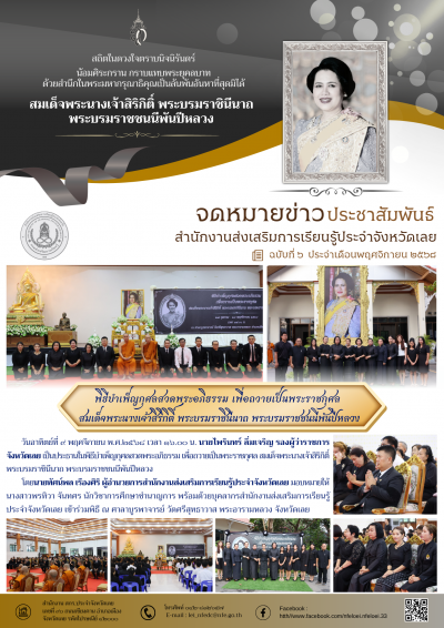วันอาทิตย์ที่ ๙ พฤศจิกายน พ.ศ.๒๕๖๘ เวลา ๑๖.๐๐ น. นายไพรินทร์ ลิ่มเจริญ รองผู้ว่าราชการจังหวัดเลย เป็นประธานในพิธีบำเพ็ญกุศลสวดพระอภิธรรม เพื่อถวายเป็นพระราชกุศล สมเด็จพระนางเจ้าสิริกิติ์ พระบรมราชินีนาถ พระบรมราชชนนีพันปีหลวง