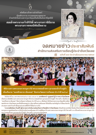 วันอังคารที่ ๒๐ มกราคม พ.ศ.๒๕๖๙ เวลา ๐๗.๓๙ น. นายชัยพจน์ จรูญพงศ์ ผู้ว่าราชการจังหวัดเลย เป็นประธานในพิธีบวงสรวงพระบรมราชานุสาวรีย์ พระบาทสมเด็จพระจุลจอมเกล้าเจ้าอยู่หัว รัชกาลที่ ๕ เนื่องในงาน “ดอกฝ้ายบาน เมืองเลย” สืบสานวัฒนธรรมไทเลย ประจำปี ๒๕๖๙ เพื่อน้อมรำลึกในพระมหากรุณาธิคุณที่ทรงมีต่อพสกนิกรชาวจังหวัดเลย และเป็นสิริมงคลแก่การจัดงานฝ้ายบานเมืองเลย ซึ่งถือเป็นงานสำคัญประจำปีของจังหวัดประสบความสำเร็จเสร็จสิ้นทุกอย่างตามที่ตั้งใจไว้ได้อย่างราบรื่น