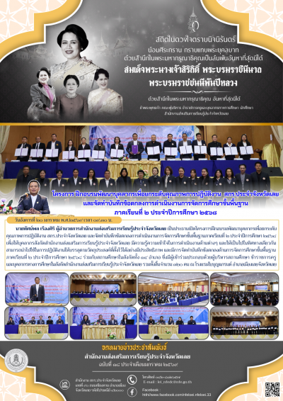 โครงการ ฝึกอบรมพัฒนาบุคลากรเพื่อยกระดับคุณภาพการปฏิบัติงาน สกร.ประจำจังหวัดเลย และจัดทำบันทึกข้อตกลงการดำเนินงานการจัดการศึกษาขั้นพื้นฐาน ภาคเรียนที่ ๒ ประจำปีการศึกษา ๒๕๖๘