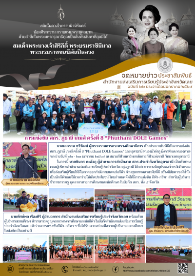 นายเอกราช ชวีวัฒน์ ผู้ตรวจราชการกระทรวงศึกษาธิการ เป็นประธานในพิธีเปิดการแข่งขัน สกร. ภูธานี เกมส์ ครั้งที่ 8 “Phuthani DOLE Games” (เลย อุดรธานี หนองบัวลำภู บึงกาฬ และหนองคาย) ระหว่างวันที่ ๒๒ - ๒๓ มกราคม ๒๕๖๙ ณ สนามกีฬามหาวิทยาลัยการกีฬาแห่งชาติ วิทยาเขตอุดรธานี