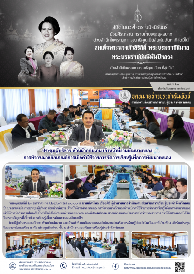 วันพฤหัสบดีที่ ๒๙ มกราคม พ.ศ.๒๕๖๙ เวลา ๑๐.๐๐ น. นายทัศน์พล เรืองศิริ ผู้อำนวยการสำนักงานส่งเสริมการเรียนรู้ประจำจังหวัดเลย เป็นประธานดำเนินการประชุมผู้บริหาร หัวหน้ากล่มงาน เจ้าหน้าที่งานพัฒนาตนเอง การพิจารณาหลักเกณฑ์การเบิกค่าใช้จ่ายการจัดการเรียนรู้ เพื่อการพัฒนาตนเอง เพื่อให้การจัดกิจกรรมในระดับพื้นที่เป็นไปในทิศทางเดียวกัน เหมาะสม และมีประสิทธิภาพ สอดคล้องกับระเบียบการเบิกจ่ายของราชการ ภายโด้งประมาณที่ได้รับจัดสรรหลักสูตรที่เกี่ยวกับการเรียนรู้เพื่อการพัฒนาตนเองด้านอาชีพ