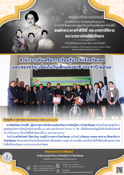 สำนักงานส่งเสริมการเรียนรู้ประจำจังหวัดเลย มอบของขวัญ เนื่องในวันเด็กแห่งชาติ ประจำปี ๒๕๖๙