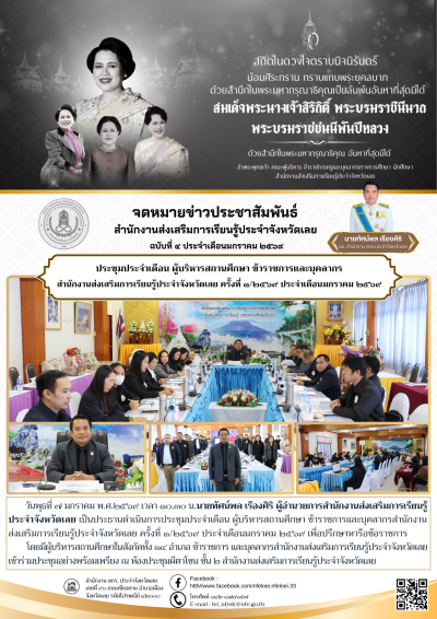 ประชุมประจำเดือน ผู้บริหารสถานศึกษา ข้าราชการและบุคลากร สำนักงานส่งเสริมการเรียนรู้ประจำจังหวัดเลย ครั้งที่ ๑/๒๕๖๙ ประจำเดือนมกราคม ๒๕๖๙