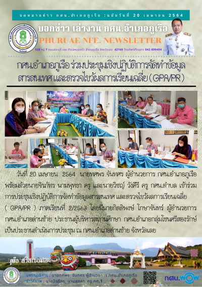 กศน.อำเภอภูเรือ ร่วมประชุมเชิงปฏิบัติการจัดทำข้อมูลสารสนเทศ และตรวจไขว้ผลการเรียนเฉลี่ย ( GPA/PR )