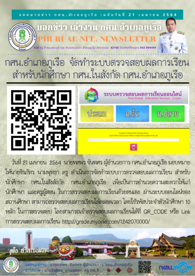 กศน.อำเภอภูเรือ จัดทำระบบตรวจสอบผลการเรียน สำหรับนักศึกษา กศน.ในสังกัด กศน.อำเภอภูเรือ