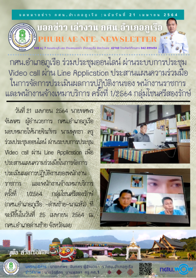 กศน.อำเภอภูเรือ ร่วมประชุมออนไลน์ ผ่านระบบการประชุม Video call ผ่าน Line Application ประสานแผนความร่วมมือ ในการจัดการประเมินผลการปฏิบัติงานของ พนักงานราชการ และพนักงานจ้างเหมาบริการ ครั้งที่ 1/2564 กลุ่มโซนศรีสองรักษ์