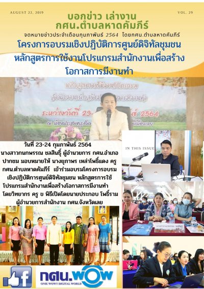โครงการอบรมเชิงปฏิบัติการศูนย์ดิจิทัลชุมชน หลักสูตรการใช้งานโปรแกรมสำนักงานเพื่อสร้างโอกาสการมีงานทำ