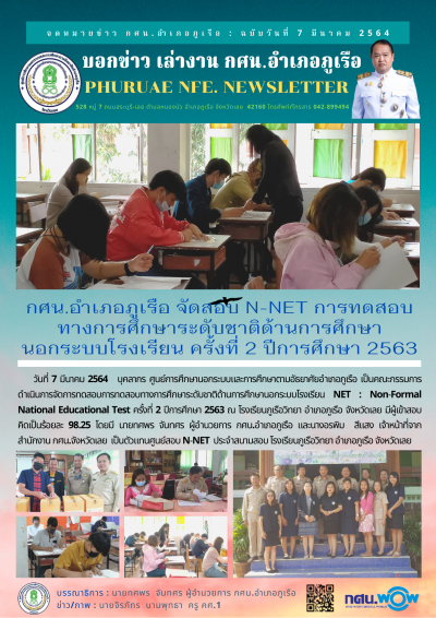 กศน.อำเภอภูเรือ จัดสอบ N-NET การทดสอบทางการศึกษาระดั[ชาติด้านการศึกษานอกระบบโรงเรียน ครั้งที่ 2 ปีการศึกษา 2563