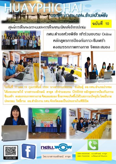 กศน.ตำบลห้วยพิชัย เข้าร่วมอบรม Online หลักสูตรการป้องกันภาวะซึมเศร้า คงสมรรถภาพทางกาย จิตและสมอง