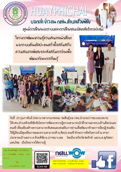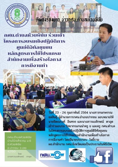 กศน.ตำบลห้วยพิชัย ร่วมเข้าโครงการอบรมเชิงปฏิบัติการศูนย์ดิจิทัลชุมชน หลักสูตรการใช้โปรแกรมสำนักงานเพื่อสร้างโอกาสการมีงานทำ