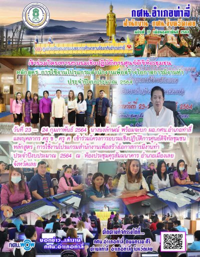 กศน.อำเภอท่าลี่ เข้าร่วมโครงการอบรมเชิงปฏิบัติการศูนย์ดิจิทัลชุมชน