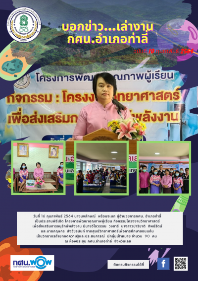 กศน. อำเภอท่าลี่ จัดโครงการพัฒนาคุณภาพผู้เรียน กิจกรรมโครงงานวิทยาศาสตร์