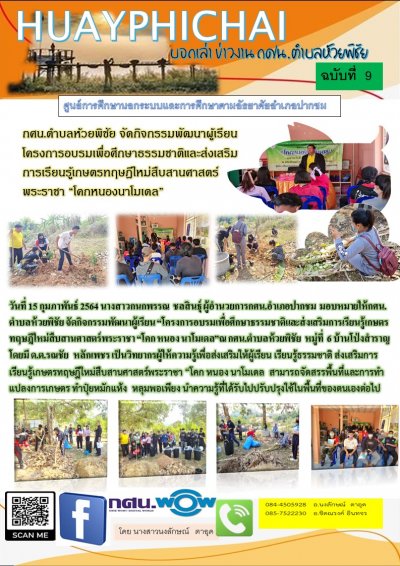 กศน.ตำบลห้วยพิชัย จัดกิจกรรมพัฒนาผู้เรียน โครงการอบรมเพื่อศึกษาธรรมชาติและส่งเสริมการเรียนรู้เกษตรทฤษฎีใหม่สืบสานศาสตร์พระราชา “โคกหนองนาโมเดล”