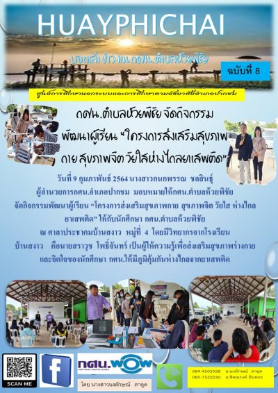 กศน.ตำบลห้วยพิชัย จัดกิจกรรม พัฒนาผู้เรียน “โครงการส่งเสริมสุขภาพกาย สุขภาพจิต วัยใสห่างไกลยาเสพติด”