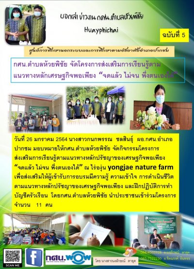 กศน.ตำบลห้วยพิชัย "จดแล้ว ไม่จน พึ่งตนเองได้"