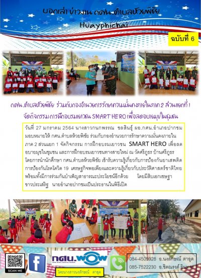 กศน.ตำบลห้วยพิชัย ร่วมกับกองอำนวยการรักษาความมั่นคงภายในภาค 2 ส่วนแยกที่ 1 จัดกิจกรรม การฝึกอบรมเยาวชน SMART HERO เพื่อลดอบายมุขในชุมชน