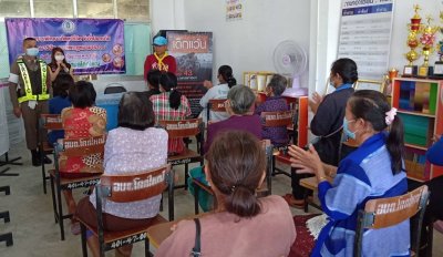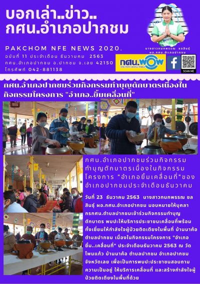 กศน.อำเภอปากชมร่วมกิจกรรมทำบุญตักบาตรเนื่องในกิจกรรมโครงการ "อำเภอ..ยิ้มเคลื่อนที่"