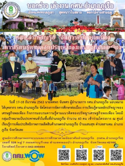 กศน.อำเภอภูเรือ จัดการศึกษาต่อเนื่อง การเรียนรู้ตามหลักปรัชญาของเศรษฐกิจพอเพียง
