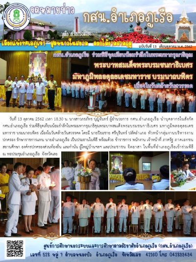 กศน.อำเภอภูเรือ ร่วมพิธีจุดเทียนน้อมรำลึกในพระมหากรุณาธิคุณพระบาทสมเด็จพระบรมชนกาธิเบศร มหาภูมิพลอดุลยเดชมหาราช บรมนาถบพิตร เนื่องในวันคล้ายวันสวรรคต