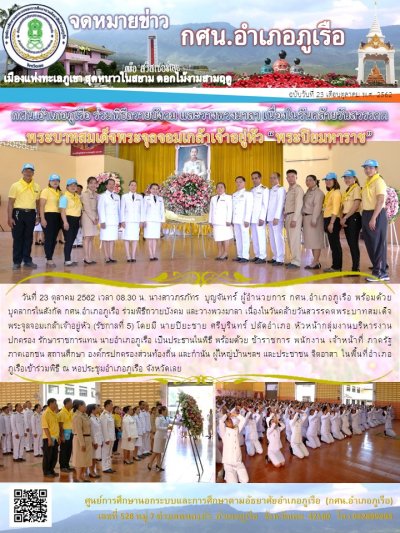 กศน.อำเภอภูเรือ ร่วมพิธีถวายบังคม และวางพวงมาลา เนื่องในวันคล้ายวันสวรรคตพระบาทสมเด็จพระจุลจอมเกล้าเจ้าอยู่หัว (รัชกาลที่ 5)