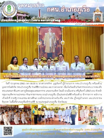 กศน.อำเภอภูเรือ ร่วมพิธีถวายบังคม และวางพวงมาลา เนื่องในวันคล้ายวันสวรรคตพระบาทสมเด็จพระบรมชนกาธิเบศร มหาภูมิพลอดุลยเดชมหาราช บรมนาถบพิตร