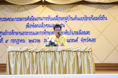 กศน.อำเภอเมืองเลย จัดโครงการอบรมคณะกรรมการดำเนินงานการขับเคลื่อนหมู่บ้านต้นแบบไทยนิยม ยั่งยืน เพื่อพัฒนาสังคมและชุมชน ณ โรงแรมใบบุญแกรนด์ ต.นาอาน อ.เมืองเลย จ.เลย