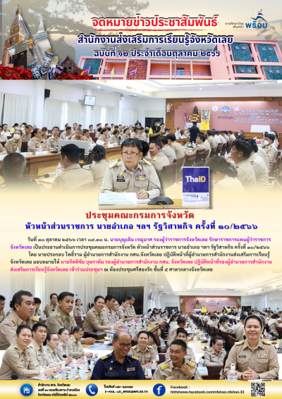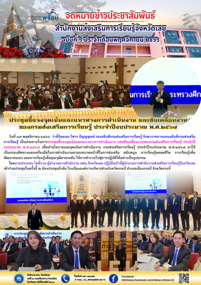 ประชุมประจำเดือนผู้บริหารสถานศึกษา ข้าราชการและบุคลากร สำนักงานส่งเสริมการเรียนรู้จังหวัดเลย ครั้งที่ ๖/๒๕๖๖ ประจำเดือน พฤศจิกายน ๒๕๖๖