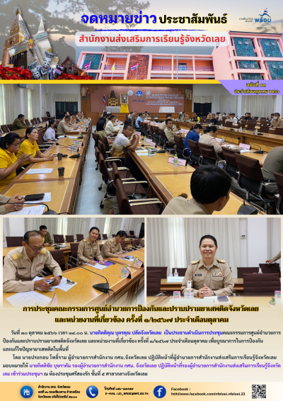 การประชุมคณะกรรมการศูนย์อำนวยการป้องกันและปราบปรามยาเสพติดจังหวัดเลย และหน่วยงานที่เกี่ยวข้อง ครั้งที่ ๑/๒๕๖๗ ประจำเดือนตุลาคม