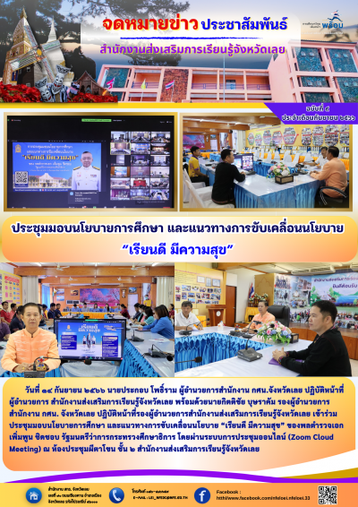 ประชุมมอบนโยบายการศึกษา และแนวทางการขับเคลื่อนนโยบาย “เรียนดี มีความสุข”