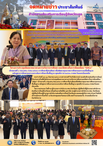 โครงการประชุมสัมมนาแนวทางการบริหารการศึกษา และทิศทางในการขับเคลื่อน “SDGs” เป้าหมายที่ ๔ (Quality Education การศึกษาที่เท่าเทียม) เพื่อพัฒนาคุณภาพการศึกษานอกระบบขั้นพื้นฐาน หลักสูตรการศึกษานอกระบบระดับการศึกษาขั้นพื้นฐาน พุทธศักราช ๒๕๕๑ ภาคตะวันออกเฉียงเหนือ
