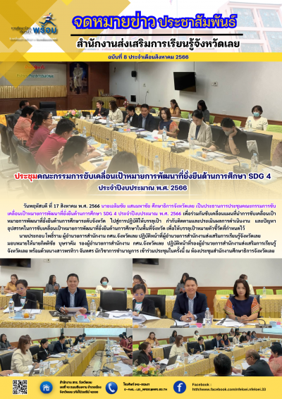 ประชุมคณะกรรมการขับเคลื่อนเป้าหมายการพัฒนาที่ยั่งยืนด้านการศึกษา SDG 4 ประจำปีงบประมาณ พ.ศ. 2566