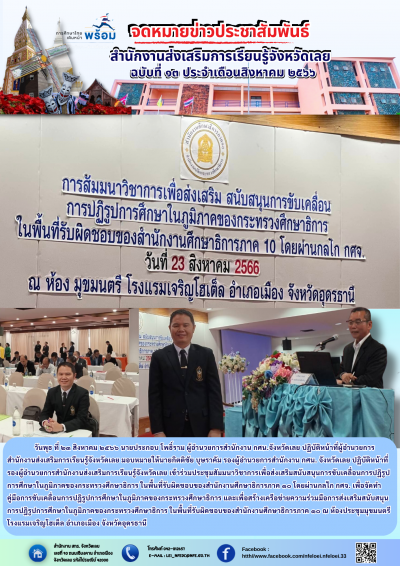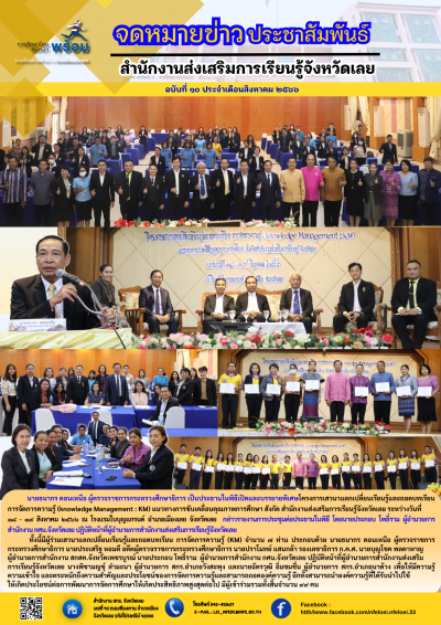 โครงการเสวนาแลกเปลี่ยนเรียนรู้และถอดบทเรียน การจัดการความรู้ (knowledge Management : KM) แนวทางการขับเคลื่อนคุณภาพการศึกษา สังกัด สำนักงานส่งเสริมการเรียนรู้จังหวัดเลย ระหว่างวันที่ ๑๘ - ๑๙ สิงหาคม ๒๕๖๖