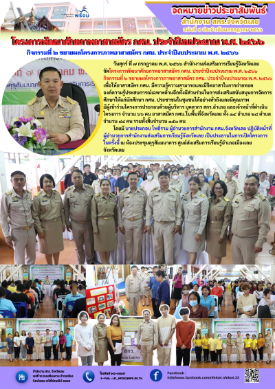โครงการพัฒนาศักยภาพอาสาสมัคร กศน. ประจำปีงบประมาณ พ.ศ. ๒๕๖๖ กิจกรรมที่ ๒ ขยายผลโครงการภาพอาสาสมัคร กศน. ประจำปีงบประมาณ พ.ศ. ๒๕๖๖