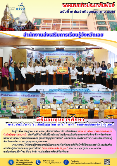 พิธีมอบทุนการศึกษา "พระบางเมืองเลย รุ่นเลิศปัญญามหาบารมี" และ "สหกรณ์ออมทรัพย์ครูเลย"