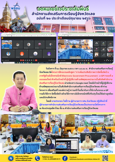 โครงการฝึกอบรมหลักสูตร "การเพิ่มประสิทธิภาพการจัดซื้อจัดจ้าง ภาครัฐด้วยอิเล็กทรอนิกส์ (Electronic Government Procurement : e-GP) ระยะที่ ๕ แบบออนไลน์ สำหรับเจ้าหน้าที่ ผู้ปฏิบัติงานด้านพัสดุของหน่วยงานในสังกัดสำนักงานส่งเสริมการเรียนรู้จังหวัดเลย ผ่านช่องทาง Google meet