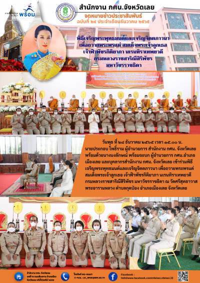 พิธีเจริญพระพุทธมนต์และเจริญจิตตภาวนา เพื่อถวายพระพรแด่ สมเด็จพระเจ้าลูกเธอ เจ้าฟ้าพัชรกิติยาภา นเรนทิราเทพยวดี กรมหลวงราชสาริณีสิริพัชร มหาวัชรราชธิดา